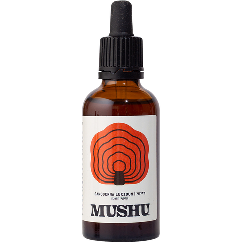 בקבוק 50 מ"ל של תמצית ריישי - מיצוי כפול, מרוכז במיוחד מגופי הפרי שאנחנו מגדלים בעצמנו. מכיל: 100% גופי פרי מפטריות ריישי בגידול מקומי, מים, אלכוהול, גליצרין.